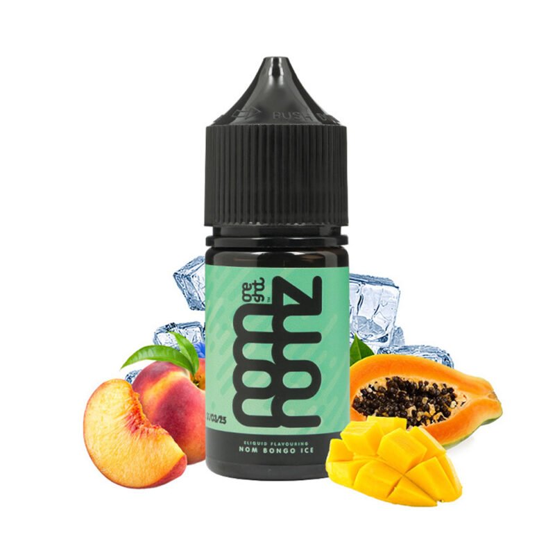 Experience an exotic fruit blend with Nom Nomz Nom Bongo Ice. A unique fusion of juicy peach, sweet papaya, and aromatic mango, perfectly balanced with a cool, icy finish, delivering a truly refreshing vaping sensation.
